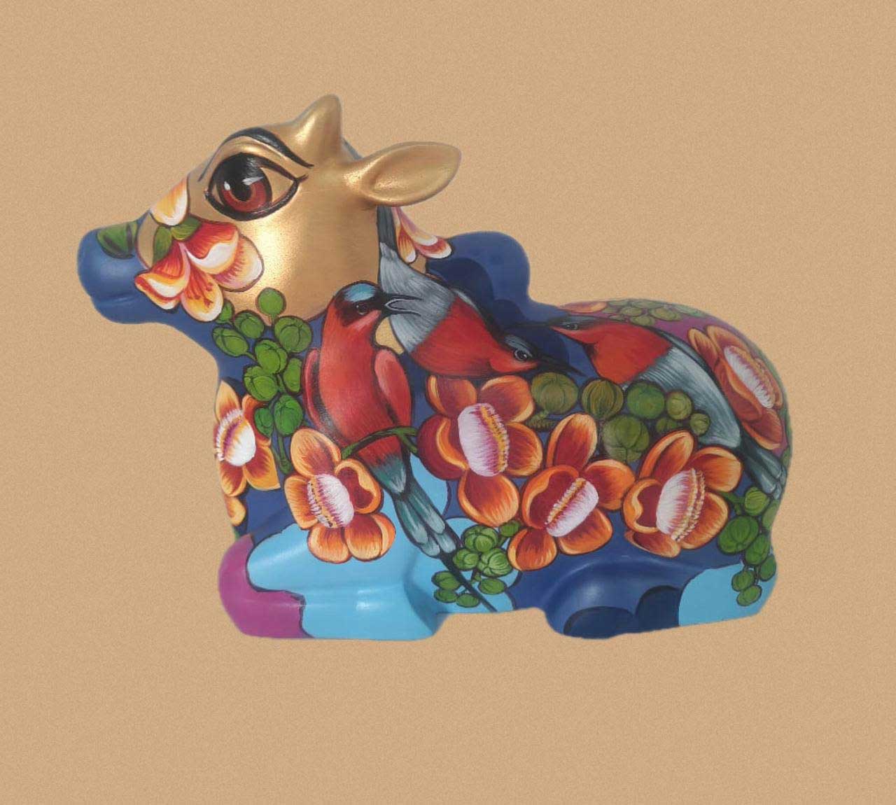 Sachindra Nath Jha was born in 1975 at Madhubani in Bihar. He studied at the College of Arts at Patna, Bihar. Sachindra Nath had the good fortune to grow up surrounded by the richness of Madhubani art. Painting has fascinated him since his childhood and you can see that he was highly influenced by the Madhubani art form. Sachindra Nath’s works are based on the river Ganga and all that happens around the river that includes the flowers, pujas and ceremonies. He loves to use vibrant colours like green, blue, violet and red! His fondness for colours started when he was a child, as he watched his mother make beautiful “rangolis”. Though he started off as a painter and has worked for several years in this medium, he started to focus on sculpture from 2005 and has created his unique space in this area.